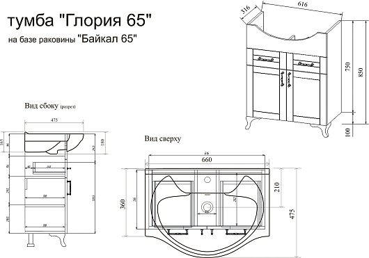 Тумба с раковиной Sanflor Глория 65 - арт. С04591 / 1.WH10.9.651.