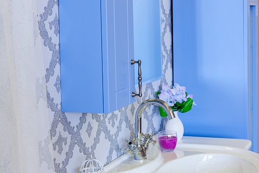 Зеркальный шкаф Глория 85 L голубой матовый