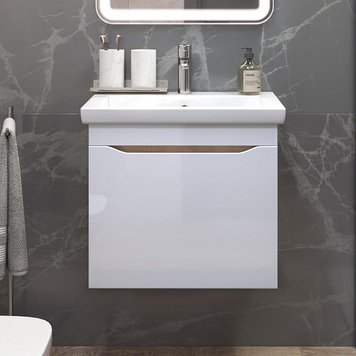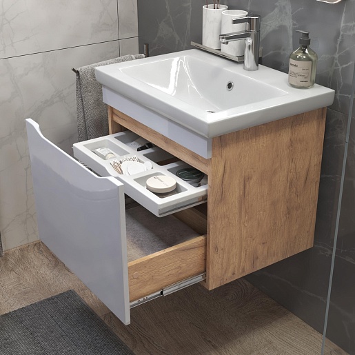 Тумба под раковину Grani 600-0-1 подвесная белая/дуб золотой