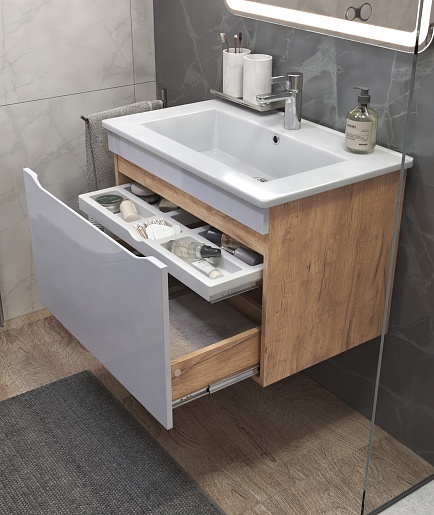 Тумба под раковину Grani 750-0-1 подвесная белая/дуб золотой