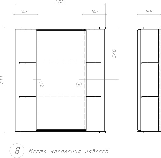 Зеркальный шкаф Vigo Nova 600 - арт. zsh.NOV.60.