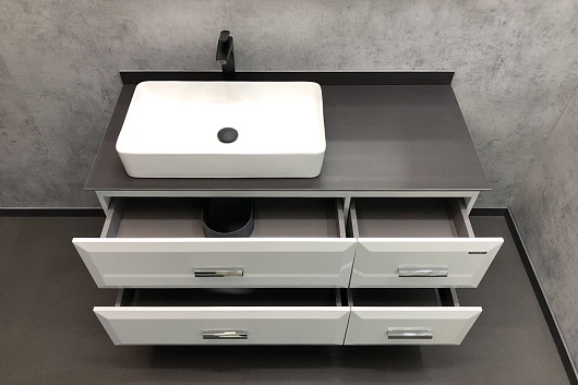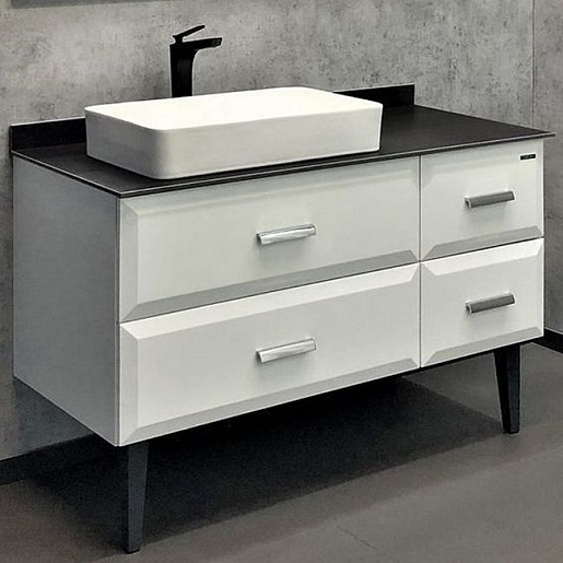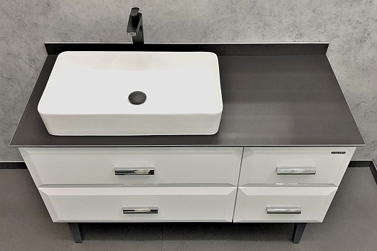 Тумба с раковиной Империя 120 с графитовой столешницей белая