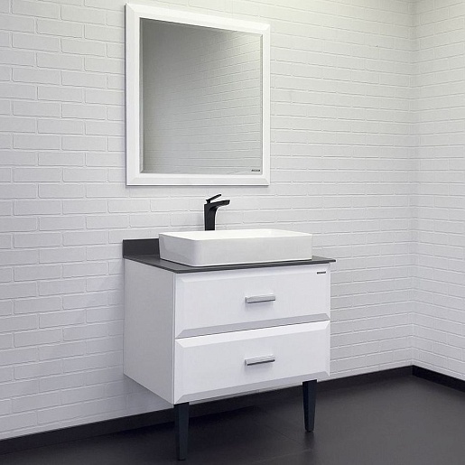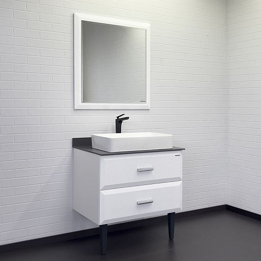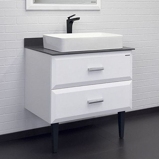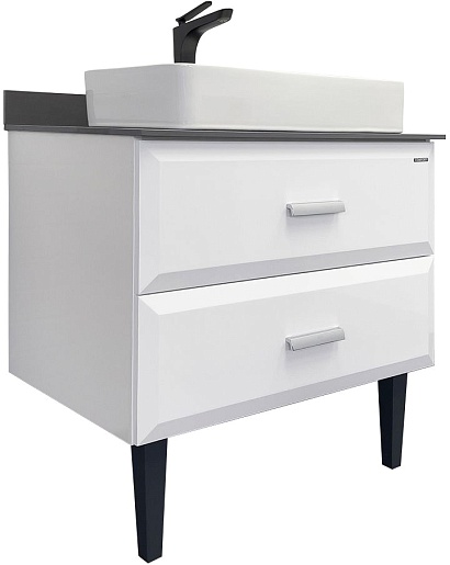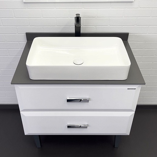 Тумба с раковиной Империя 80 с графитовой столешницей белая