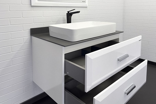 - Столешница и пристенный бортик из керамогранита цвета графит.