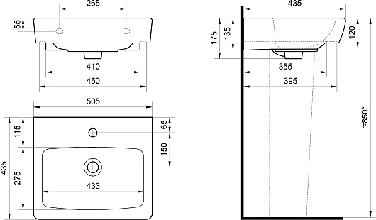 - Раковина со слив-переливом.