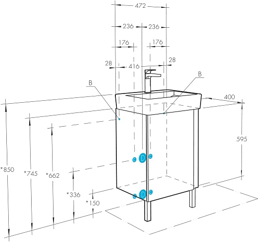 - Комбинированный (с опорными ножками) или подвесной монтаж.