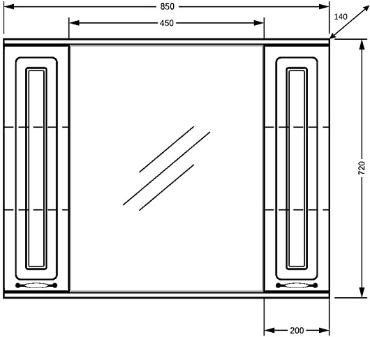 - Материал корпуса/фасада: ЛДСП / МДФ, зеркало.
