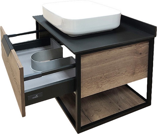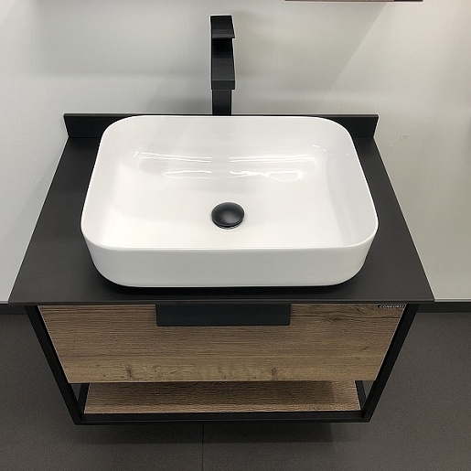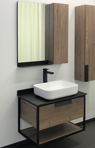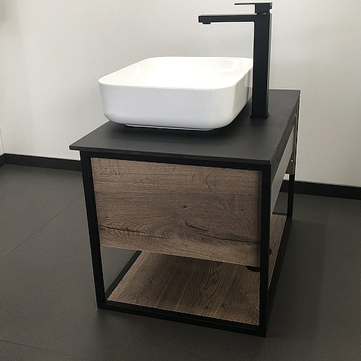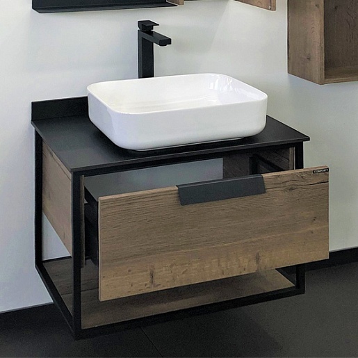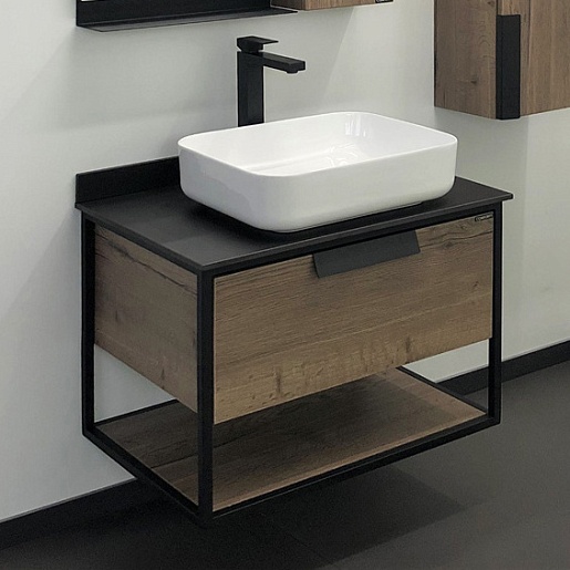 Тумба с раковиной Кельн 75 подвесная дуб темный/черный
