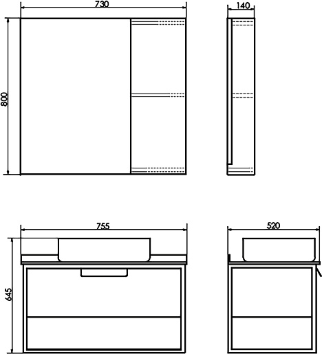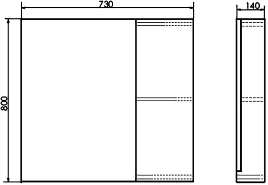 - Размер (ШxВxГ): 730x800x136 мм.