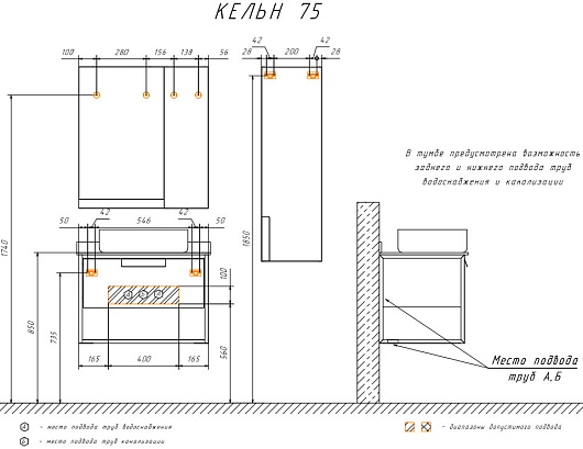 В комплекте: тумба, столешница, раковина, зеркальный шкаф, крепеж.