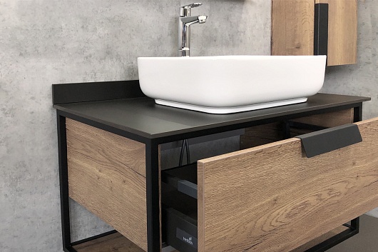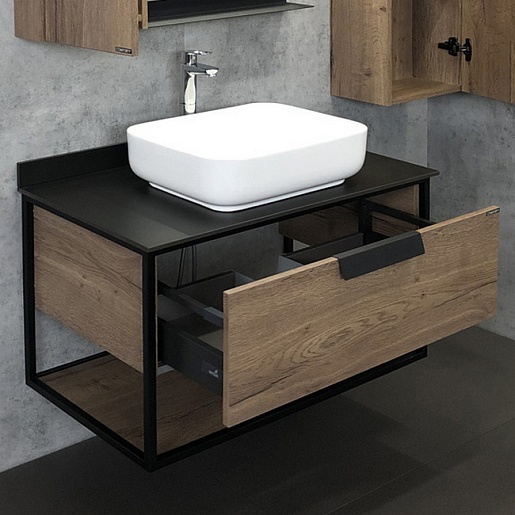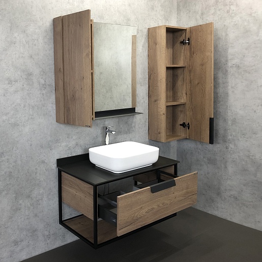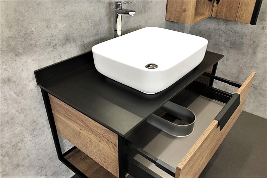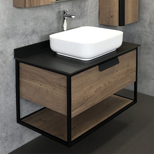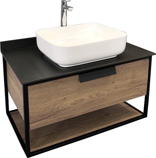 Тумба с раковиной Кельн 90 подвесная дуб темный/черный