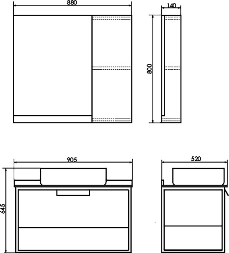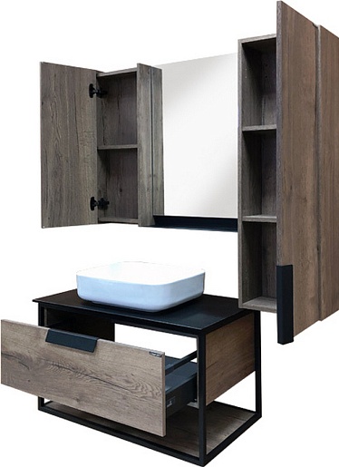 В комплекте: тумба, столешница, раковина, зеркальный шкаф, крепеж.