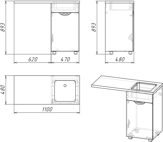 Комплектация: тумба, раковина, зеркальный шкаф, крепеж.