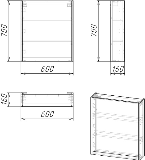 Комплектация: тумба, раковина, зеркальный шкаф, ножка (4 шт.).