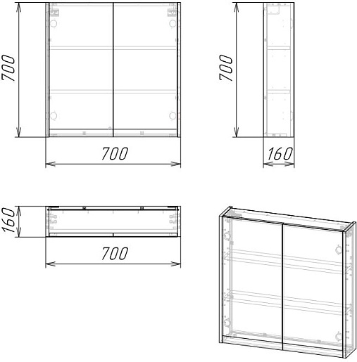 - Размер (ШxВxГ): 700x700x160 мм.