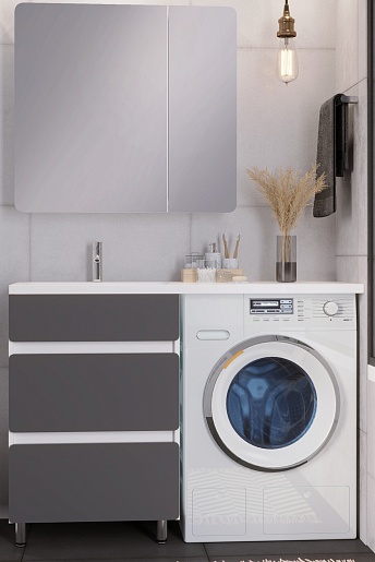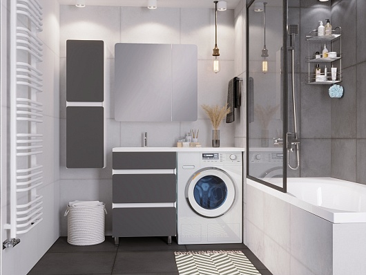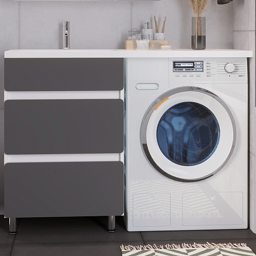 Тумба под раковину Корделия 60 под стиральную машину белая/серая матовая