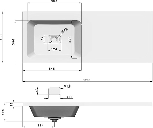 - Раковина из литьевого мрамора со слив-переливом.