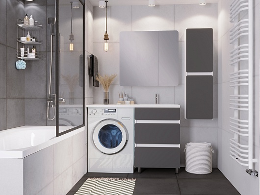 Тумба под раковину Корделия 60 под стиральную машину белая/серая матовая