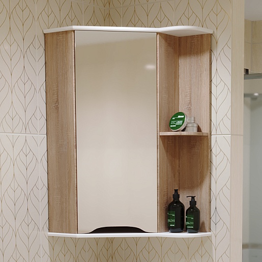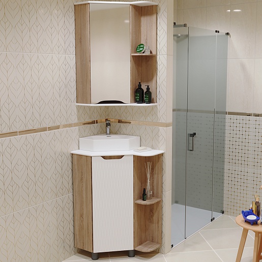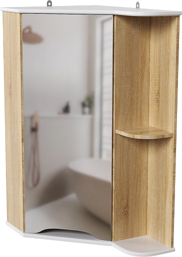 Зеркальный шкаф Корнер 56 угловой белый/дуб