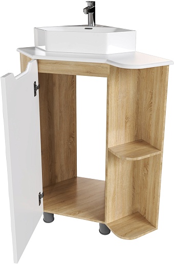 Тумба под раковину Корнер 67.5 R угловая белая/дуб