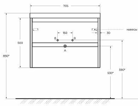 - База под раковину подвесная с двумя выкатными ящиками, с доводчиками, KRAFT 39-700/390-2C-SO-RT