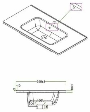- База под раковину подвесная с двумя выкатными ящиками, с доводчиками, KRAFT39-800/390-2C-PIA-BO