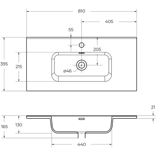- База под раковину подвесная с двумя выкатными ящиками, с доводчиками, KRAFT 39-800/390-2C-SO-PP