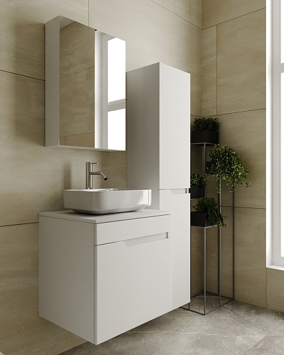 В комплекте: тумба, столешница, раковина, зеркальный шкаф, крепеж.