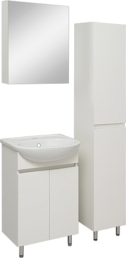 В комплекте: тумба, раковина, зеркальный шкаф, ножка (4 шт.).