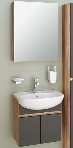 В комплекте: тумба, раковина, зеркальный шкаф, крепеж.