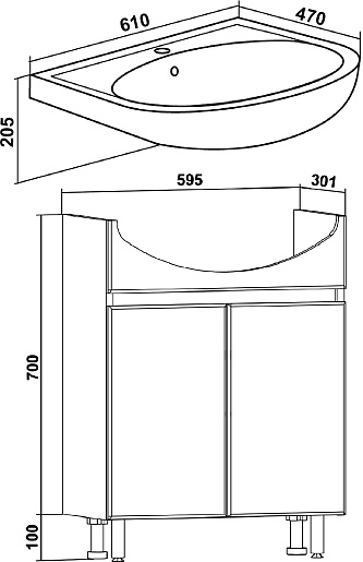 Напольная тумба с раковиной Runo Лада 60 - арт. 00-00001165 (4656760151658) / 00000000154 (4620008192772).