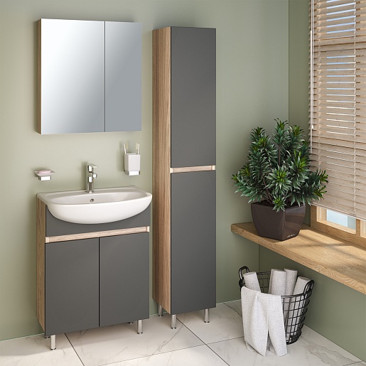 Runo Мебель для ванной Лада 60 графит/дуб серый