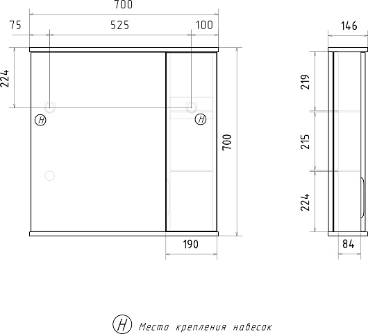 Зеркальный шкаф Volna Lake 70 R - арт. zsLAKE70.R-01.