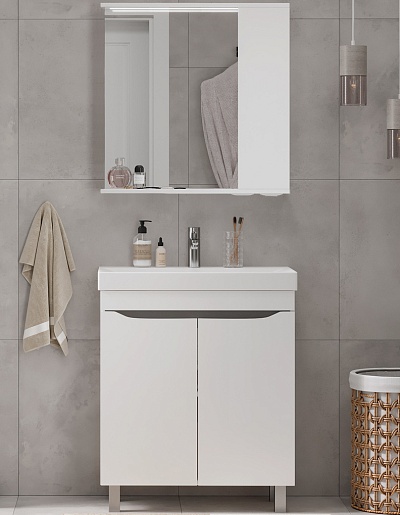 Комплектация: тумба, раковина, зеркальный шкаф, ножка (4 шт.), крепеж.