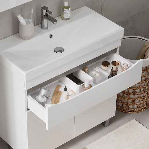 Комплектация: тумба, раковина, зеркальный шкаф, ножка (4 шт.), крепеж.