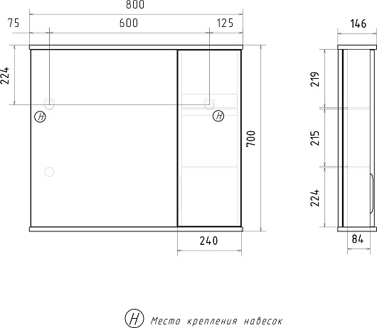 Зеркальный шкаф Volna Lake 80 R - арт. zsLAKE80.R-01.