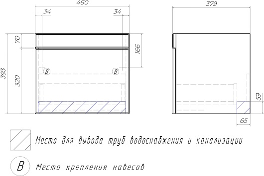 Подвесная тумба с раковиной Vigo Land 50 - арт. 018 / S-UM-COM50/1-w.