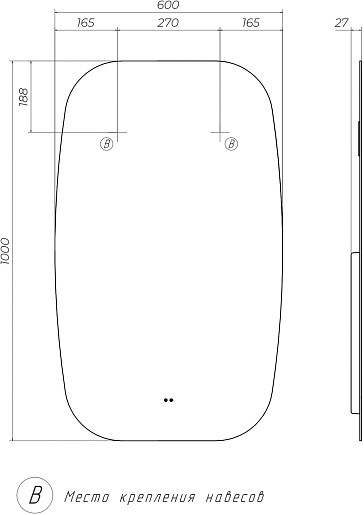 - Размер (ШxВxГ): 600x1000x27 мм.
