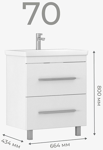 Напольная тумба с раковиной Vigo Land 70 - арт. 020 / S-UM-COM70/1-w.
