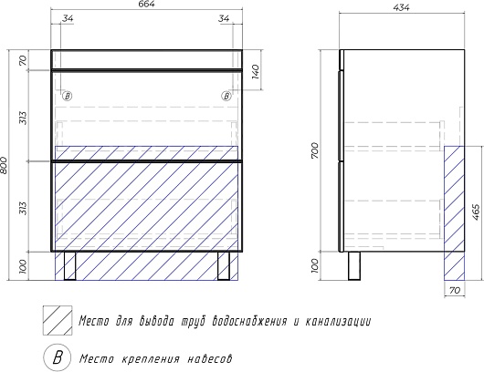 - Монтаж к стене с опорными ножками.