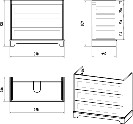 - 3 выдвижных ящика.