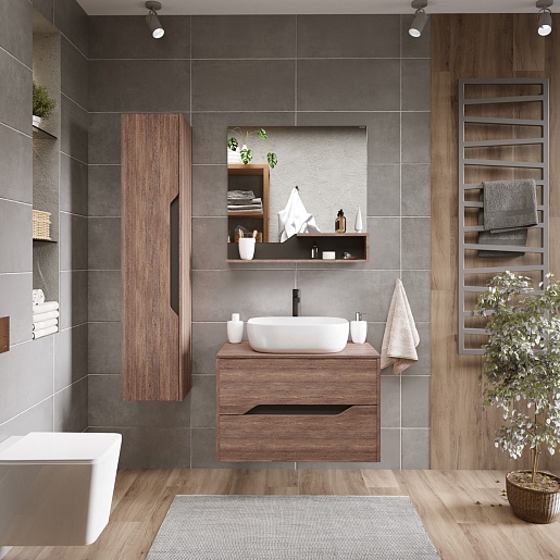 Grossman Мебель для ванной Лайф 80 GR-3020 подвесная винтажное дерево темное/графит
