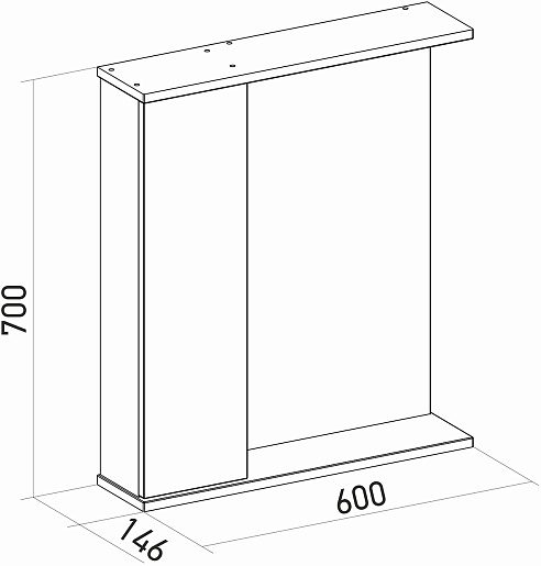 - Размер (ШxВxГ): 600x700x146 мм.