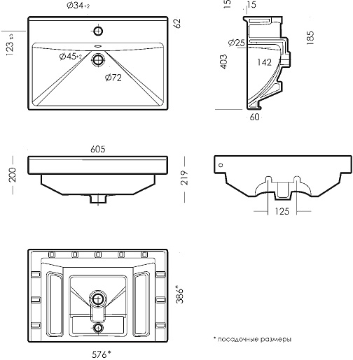 - Раковина со слив-переливом.
