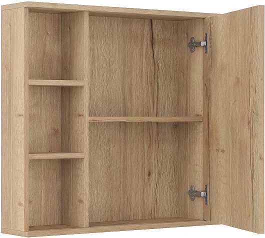 - 1 зеркальная дверца, 6 открытых полок.