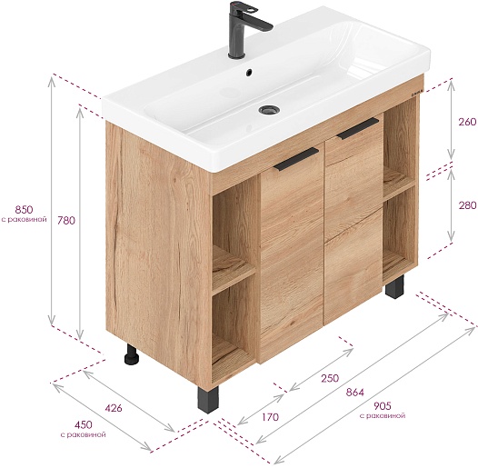 Тумба под раковину Легран 90 дуб галифакс
