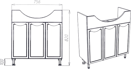 - 3 распашные дверки.