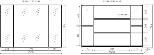 - Материал корпуса/фасада: МДФ / МДФ, зеркало.
