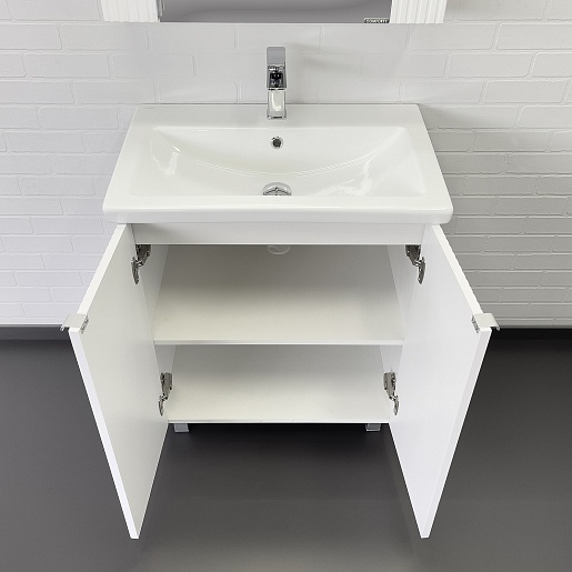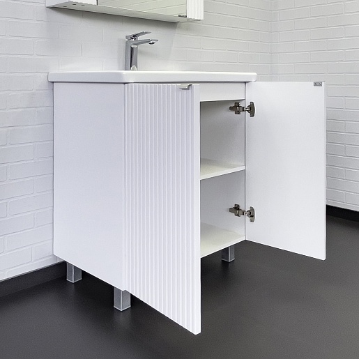 В комплекте: тумба, раковина, зеркальный шкаф, комплект ножек.