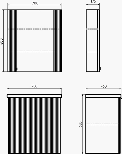 - Размер (ШxВxГ): 700x800x175 мм.